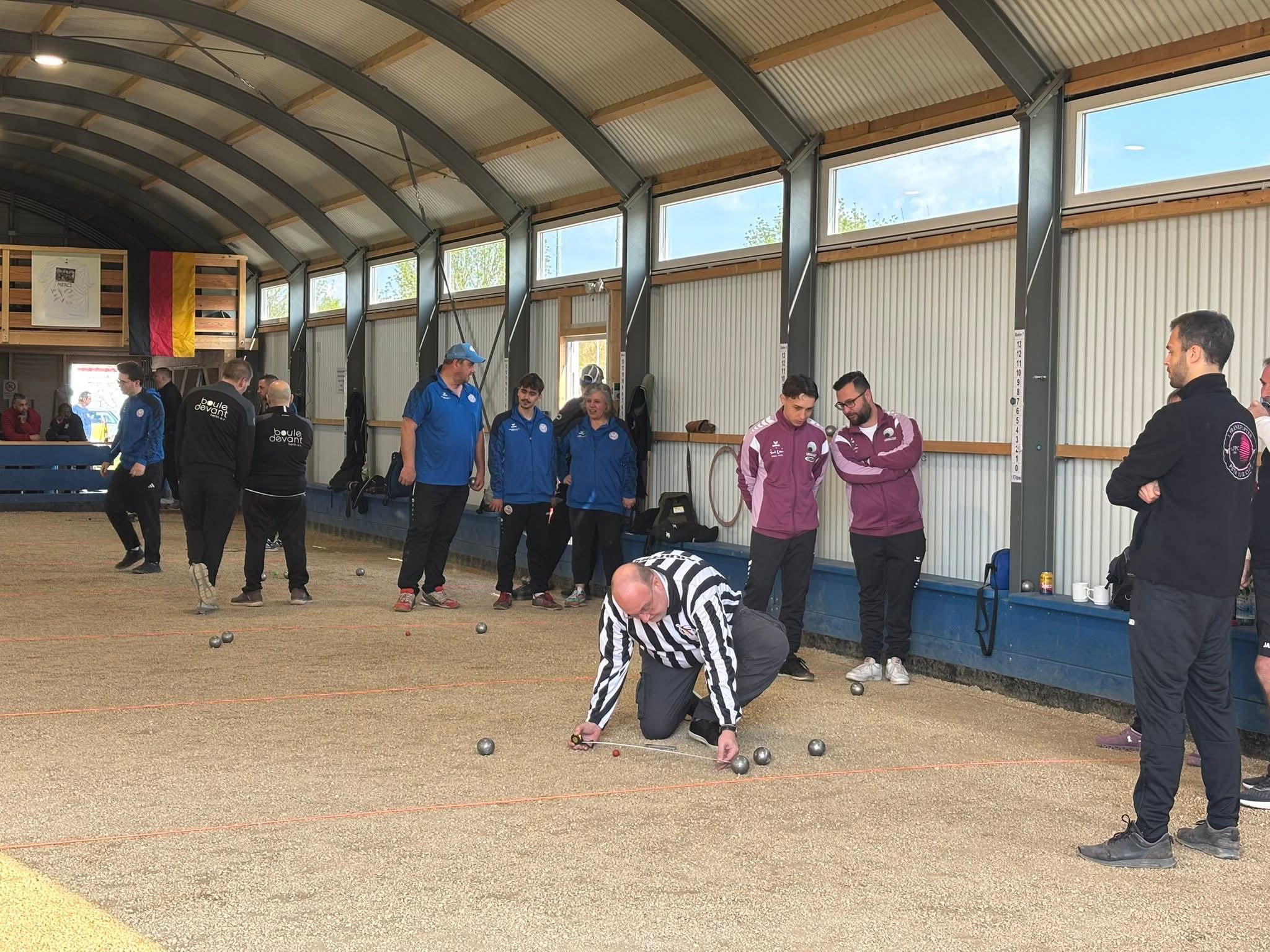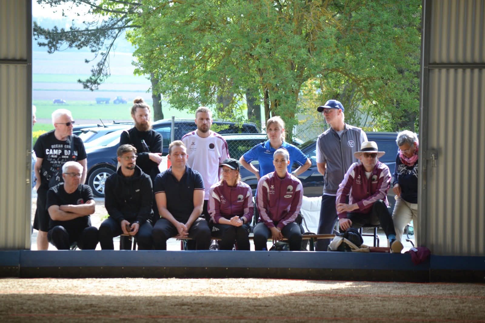 In einem freundschaftlichen Duell zwischen Niedernbergs Pokalmannschaft 1 und Mechenhard, beide nominell die jeweiligen Landesliga-Mannschaften, Mechenhard verstärkt noch mit zwei Bundelisgaspielern, von denen einer allerdings nach der ersten Runde verletzungsbedingt aufgeben mußte, behielten die Spieler vom Stückerweg mit 17:14 die Oberhand. Der Erfolg der Boulefreunde auf heimischem Gelände geriet nie ernsthaft in Gefahr. Mit einem 9:2 nach der ersten Runde dominierte Niedernberg auch Durchgang zwei bei 15:5 Punkten. Ein gewonnenes Tête, das zum Gesamtsieg reichte, gelang dann auch gleich zu Beginn von Runde drei. Mechenhard konnte danach ein wenig Ergebniskosmetik betreiben und zumindest die noch offenen Einzelpartien der dritten Runde für sich entscheiden. Da an Fronleichnam auch Niedernbergs Pokalmannschaft 3 aus Lohr mit einem Sieg zurückkehrte, stehen sich nun beide Teams der Boulefreunde im Bezirks-Halbfinale der Gruppe Nordwest in der nächsten Runde im Juli auf heimischem Geläuf gegenüber. Das zweite Halbfinale bestreiten Bürgstadt und Schnackenwerth.